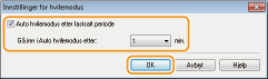 Merk av avmerkingsboksen for å gå inn i hvilemodus etter tiden angitt med [Gå inn i auto hvilemodus etter].