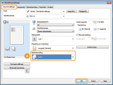 Velg [Sorter] eller [Grupper] i [Etterbehandling]