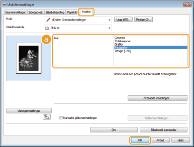 Du kan spesifisere dokumenttypen for å sikre optimal bildekvalitet. Det finnes forskjellige innstillinger for fotodokumenter, dokumenter med diagrammer eller grafer og dokumenter som har tegninger med fine linjer.
