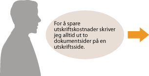 Angi [2 på 1] som en standardinnstilling i skriverdriveren. Fra neste utskriftsjobb vil hver utskriftsjobb vise 2 sider fra dokumentet. Endre standardinnstillinger