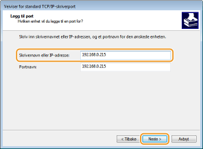 Dette er en standard Windows-port. Når du bruker denne type port, trenger du å legge til en ny port hver gang maskinens IP-adresse endres. Velg denne porttypen når du bruker maskinen i et IPv6-miljø, og når du ikke kan legge til en MFNP-port.