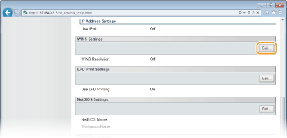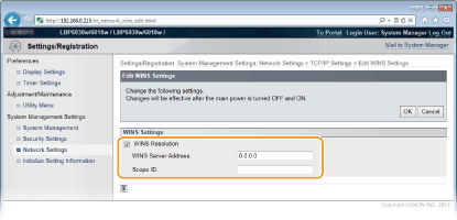 Hvis IP-adressen til WINS-serveren er hentet fra en DHCP-server, overstyrer IP-adressen som er hentet, IP-adressen som er angitt i tekstboksen [WINS Server Address].