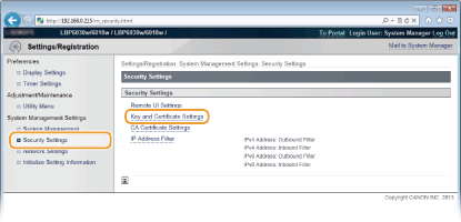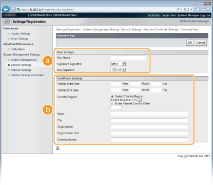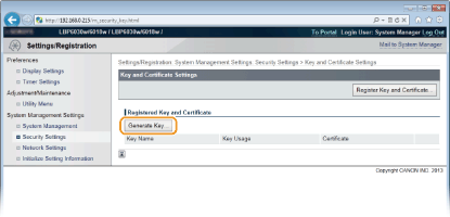 [Key and Certificate Settings].