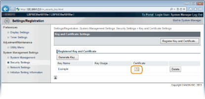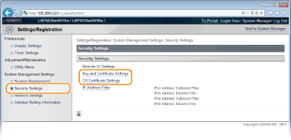 Klikk på [Key and Certificate Settings] eller [CA Certificate Settings].