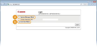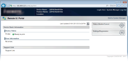 Du kan utføre alle Remote UI-funksjoner og gjøre alle innstillinger. Hvis en PIN (passord for systemstyrer) har blitt angitt, skriv det inn i [System Manager PIN]. (
