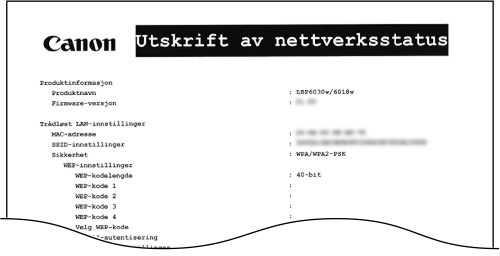 Eksempel på utskrift: [Utskrift av nettverksstatus]