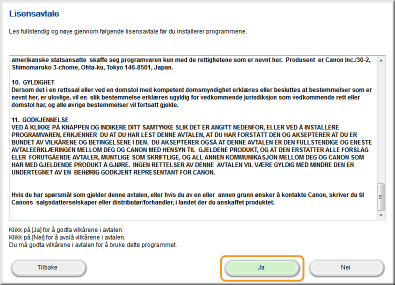 Les lisensavtalen og klikk på [Ja] for å godta.