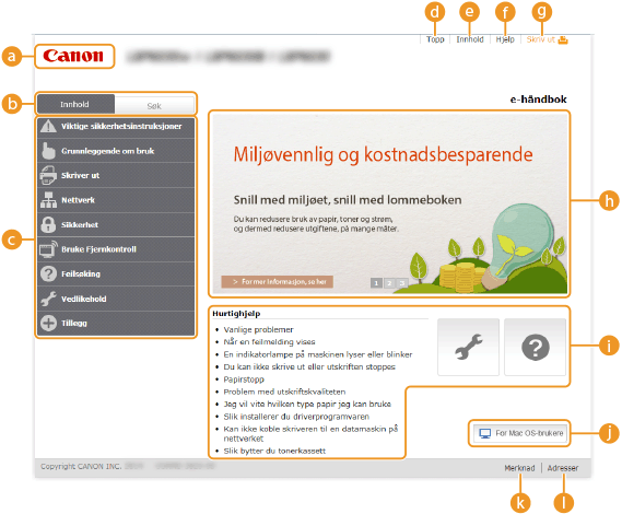 Klikk for å vise informasjon om hvordan du viser Elektronisk håndbok, hvordan du søker, og annen informasjon.