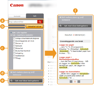 Dette viser sider som inneholder de angitte søkeordene. Fra resultatet, finn siden du ser etter og klikk på emnetittelen for siden. Hvis resultatet ikke kan vises på en side, klikk på
