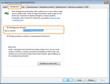 Wprowadź nazwę drukarki udostępnionej. [Sterowniki do dodania]