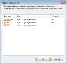 Aby użyć sterowników drukarki pobranych z witryny internetowej firmy Canon, pobierz dodatkowe sterowniki (sterowniki drukarki dla poszczególnych wersji procesora są inne od tych dla serwera wydruku).