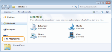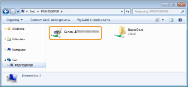 Wybierz serwer druku po kliknięciu apletu [Sieć] lub [Moje miejsca sieciowe].