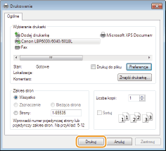 Drukowanie rozpocznie się. W niektórych aplikacjach wyświetlany jest ekran podobny do poniższego.