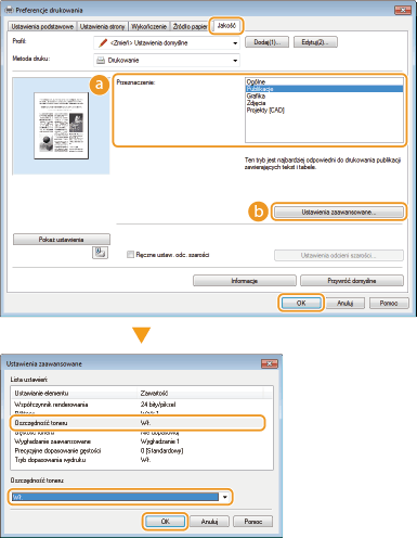 Zaznacz opcję [Oszczędność toneru] na karcie [Ustawienia zaawansowane]