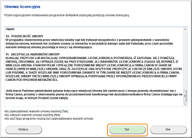 Przeczytaj umowę licencyjną i kliknij przycisk [Tak], aby zaakceptować.