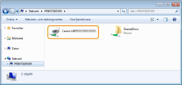 Markera utskriftsservern i [Nätverk] eller [Mina nätverksplatser].