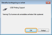 Var noga med att endast ta bort [USB Printing Support] och inte några andra enheter eller enhetsdrivrutiner