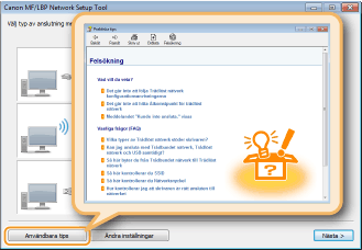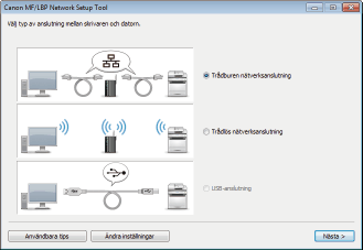 Har nätverksinställningarna på datorn slutförts? Om nätverket inte har ställts in på rätt sätt kan du inte använda skrivaren i det trådlösa nätverket, även om du gör resten av nedanstående inställningar.