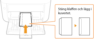 I det här avsnittet beskrivs hur du fyller på kuvert i önskad riktning samt vad du måste göra innan du fyller på kuvert. En beskrivning av hur du fyller på kuvert i multiutmatningsfacket finns i Fylla på papper i multiutmatningsfacket.
