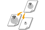 Du kan skapa förstorade och förminskade utskrifter genom att använda ett förinställt utskriftsförhållande, till exempel A5 till A4 eller ett eget förhållande som du anger i steg om 1 %.