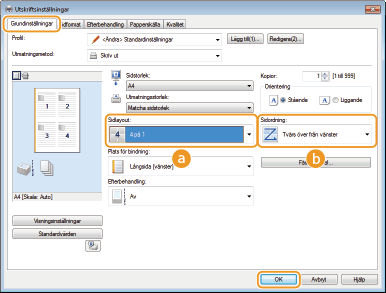 I [Sidlayout] väljer du antalet sidor som ska skrivas ut på ett enstaka ark