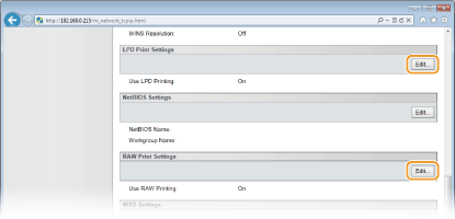 Klicka på [Edit] i [LPD Print Settings] eller [RAW Print Settings].