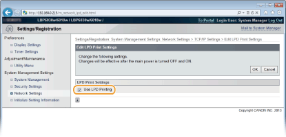 Markera kryssrutan om du vill använda LPD vid utskrift. Avmarkera kryssrutan om du inte vill använda LPD-utskrift. [Use RAW Printing]