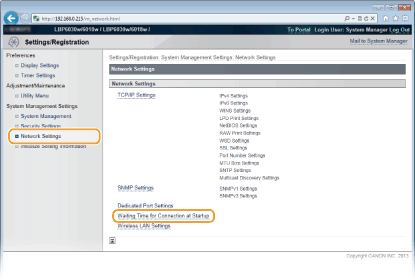 Ange väntetiden innan nätverkskommunikationen ska starta och klicka sedan på [OK].