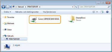 Välj en utskriftsserver i [Nätverk] eller [Mina nätverksplatser].