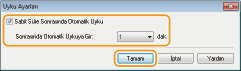 [Sonrasında Otomatik Uykuya Gir] ayarıyla belirtilen süre sonunda uyku moduna girmesi için onay kutusunu işaretleyin.