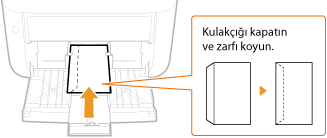 Bu bölümde, zarfları istediğiniz yönde nasıl koyacağınız ve koymadan önce tamamlamanız gereken hazırlıklar açıklanmaktadır. Çok amaçlı tepsiye zarf koymaya ilişkin prosedür açıklamasının tam metni için bkz. Çok Amaçlı Tepsiye Kağıt Koyma.