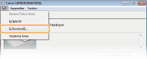 Remote UI'dan İptal Etme (LBP6030w)Yazdırma işlemini Remote UI'daki [Job Status] sayfasından iptal edebilirsiniz. Yazdırılan Belgelerin Geçerli Durumunu Denetleme