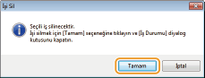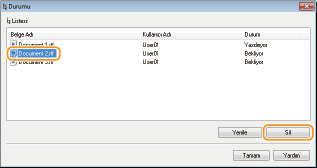 İptal etmek istediğiniz belgeyi seçin ve [Sil]'e tıklayın.