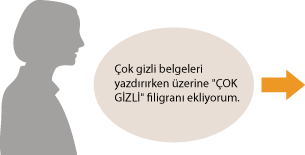 Filigran olarak "ÇOK GİZLİ" yazıp "profiller"e kaydedebilirsiniz. Daha sonra gereksiniminiz olduğunda profillerden bu filigranı seçebilirsiniz. Sık Kullanılan Yazdırma Ayarları Birleşimini Kaydetme |
