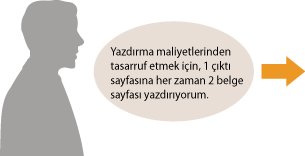 Yazıcı sürücüsünde varsayılan ayar olarak [1 üzerinde 2]'yi seçin. Sonraki yazdırma işinden başlayarak, her çıktı sayfasında belgenin 2 sayfası görünecektir. Varsayılan Ayarları Değiştirme