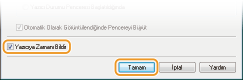 [Yazıcıya Zamanı Bildir] onay kutusunu işaretleyin ve [Tamam]'a tıklayın.
