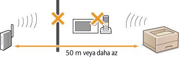 Makine ve kablosuz yönlendirici arasında duvar gibi engeller var mı?