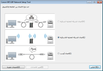 حدد [اتصال الشبكة المحلية اللاسلكية], وانقر فوق [التالي].