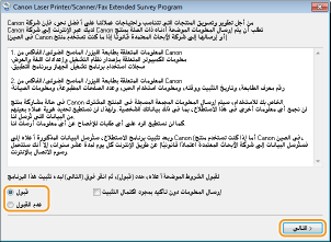 برنامج المسح الموسع للمنتج عبارة عن برنامج يهدف إلى إرسال معلومات أساسية مرتبطة بالتثبيت واستخدام الطابعة إلى Canon كل شهر لمدة 10 أعوام. وهو لا يرسل أي معلومات أخرى بما فيها المعلومات الشخصية. يمكنك إلغاء تثبيت برنامج المسح الموسع للمنتج في أي وقت. إلغاء تثبيت برنامج المسح الموسع للمنتج
