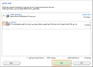 حدد مربع الاختيار الخاص بالطابعة المطلوب تثبيتها من [قائمة الطابعات].