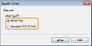هذا منفذ يسمح باكتشاف عنوان IP الخاص بالطابعة تلقائيًا. وحتى في حالة تغيير عنوان IP الخاص بالطابعة، يتم الحفاظ على الاتصال بين الطابعة والكمبيوتر، شريطة أن يكونا تابعين للشبكة الفرعية نفسها. ومن ثم، لست بحاجة إلى إضافة منفذ جديد في كل مرة يتم فيها تغيير عنوان IP. وإذا كنت تستخدم الطابعة في بيئة IPv4، يجب أن تحدد هذا الإعداد. [Standard TCP/IP Port]