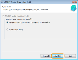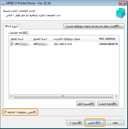 حدد مربع الاختيار الخاص بالطابعة المطلوب تثبيتها من [قائمة الطابعات].