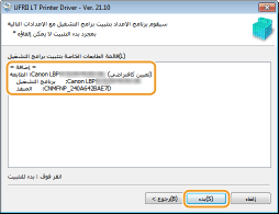 راجع معلومات الطابعة في [قائمة الطابعات الخاصة بتثبيت برامج التشغيل], وانقر فوق [بدء].
