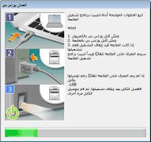عند ظهور الشاشة التالية، قم بتوصيل الكمبيوتر والطابعة بكبل USB (الاتصال عبر USB), وقم بتشغيل الطابعة.