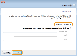 حدد [عدم مشاركة هذه الطابعة], وانقر فوق [التالي].