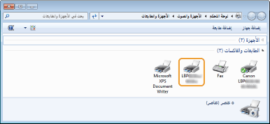 تظهر أيقونة للطابعة التي تم تثبيتها في مجلد الطابعة.