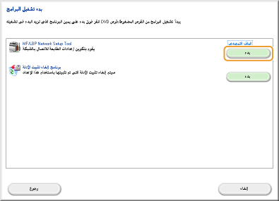 تعد MF/LBP Network Setup Tool أداة مساعدة تسمح لك بتكوين إعدادات الشبكة المبدئية من خلال اتباع التعليمات المعروضة على الشاشة. يتم تشغيل الأداة تلقائيًا عند تثبيت برنامج تشغيل الطابعة من القرص المضغوط/ قرص DVD الخاص ببرامج المستخدم. إذا كنت تريد تشغيلها بمفردها يدويًا، يمكنك تشغيلها من القرص المضغوط/ قرص DVD الخاص ببرامج المستخدم أو تشغيلها مباشرة من الملف الذي تم تنزيله من موقع Canon الإلكتروني.