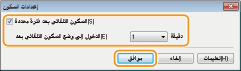 حدد مربع الاختيار للدخول في وضع السكون بعد مرور الوقت المحدد مع [الدخول إلى وضع السكون التلقائي بعد].