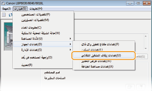 يمكنك إعداد الجهاز لإيقاف التشغيل تلقائيًا من تلقاء نفسه بعد البقاء في وضع الخمول لمدة معينة من الوقت. ويمنع ذلك إهدار استهلاك الطاقة الناجمة عن نسيان إيقاف تشغيل الجهاز. إعداد المصنع الافتراضي لمقدار الزمن الذي يمر قبل إيقاف تشغيل الجهاز هو 4 ساعات. إذا كنت ترغب في تغيير هذا الإعداد، قم بتنفيذ الإجراء التالي في نافذة حالة الطابعة.