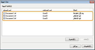 تظهر قائمة بما يصل إلى 5 مستندات، والتي تبين المستندات التي يتم طباعتها أو في انتظار طباعتها.